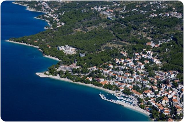 Stuttura situata vicino al centro di Brela, sulla spiaggia, all\'ombra di una pineta.